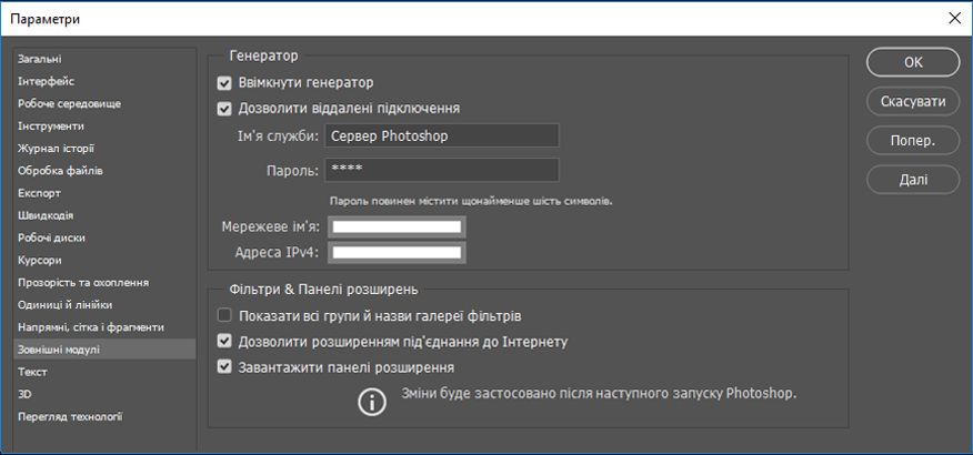 - Переконайтеся, що у Photoshop ввімкнено Віддалені з'єднання.