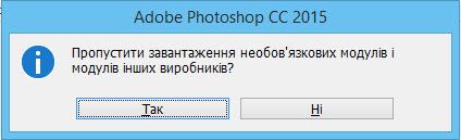 Утримуючи клавішу Shift, запустіть Photoshop. Під час запуску з’являється діалогове вікно Пропустити завантаження необов’язкових модулів і модулів інших виробників?