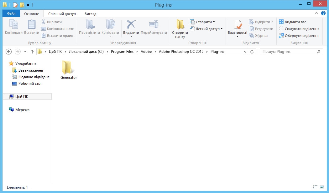Якщо ви виконали встановлення в розташування, призначене для певної версії Photoshop, то папка зовнішніх модулів Photoshop знаходиться тут: