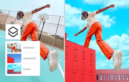 Швидко додавайте людей та об’єкти до будь-якого фото та автоматично підбирайте освітлення й колір за допомогою функції Гармонізація.