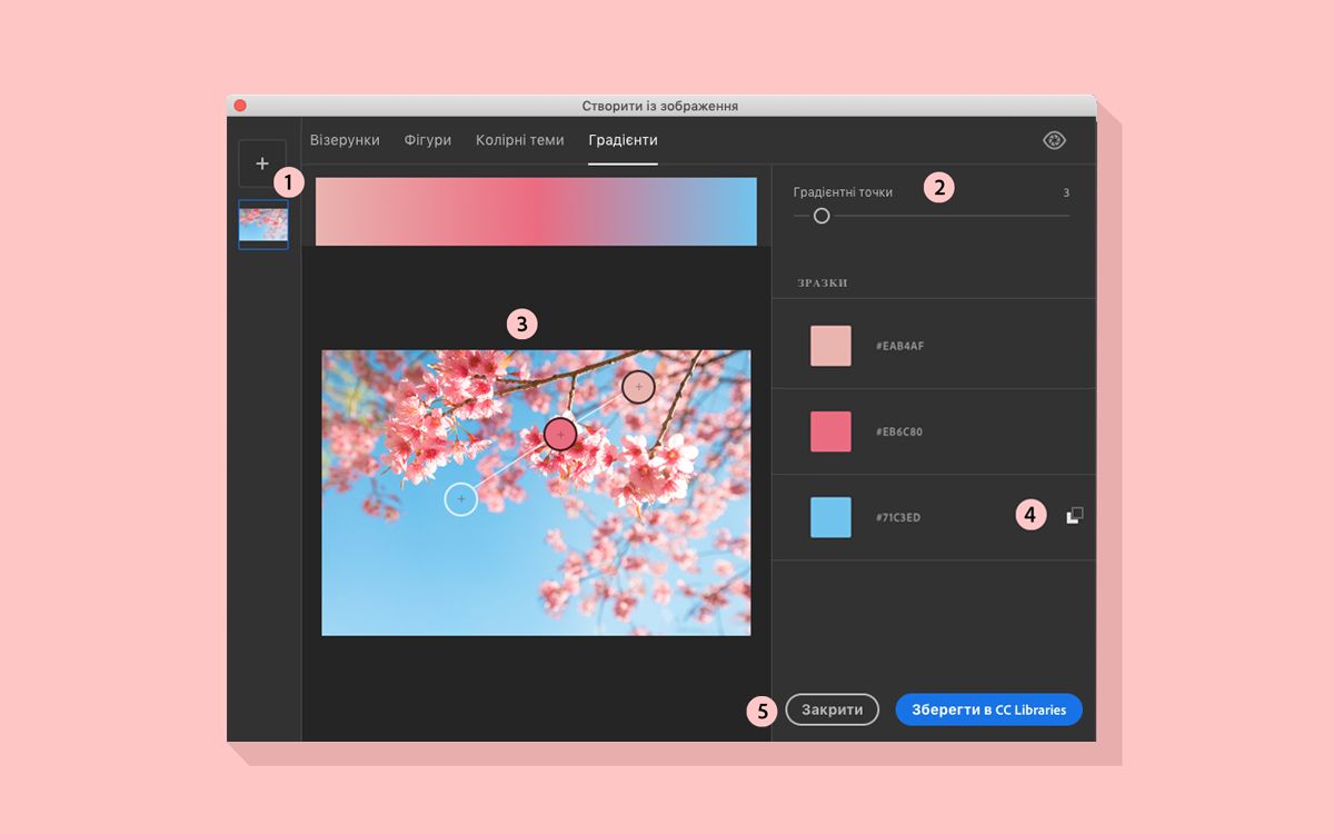Щоб отримати кольорові градієнти з зображення, виконайте такі дії: