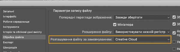 - macOS: «Photoshop» > «Налаштування» > «Обробка файлів»
