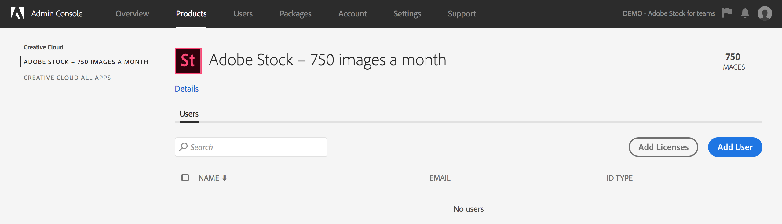 Adobe Stock надає можливість адміністраторам керувати планом робочої групи в Admin Console разом із іншими продуктами Adobe для робочих груп. Після придбання плану Adobe Stock для робочих груп адміністратор робочої групи має призначити план користувачеві для активації.