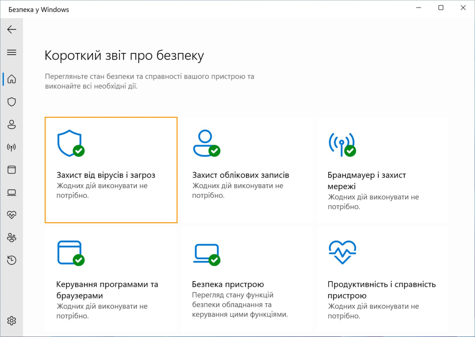 Ви також можете вибрати меню Пуск > Настройки > Оновлення та безпека > Захист від вірусів і загроз.