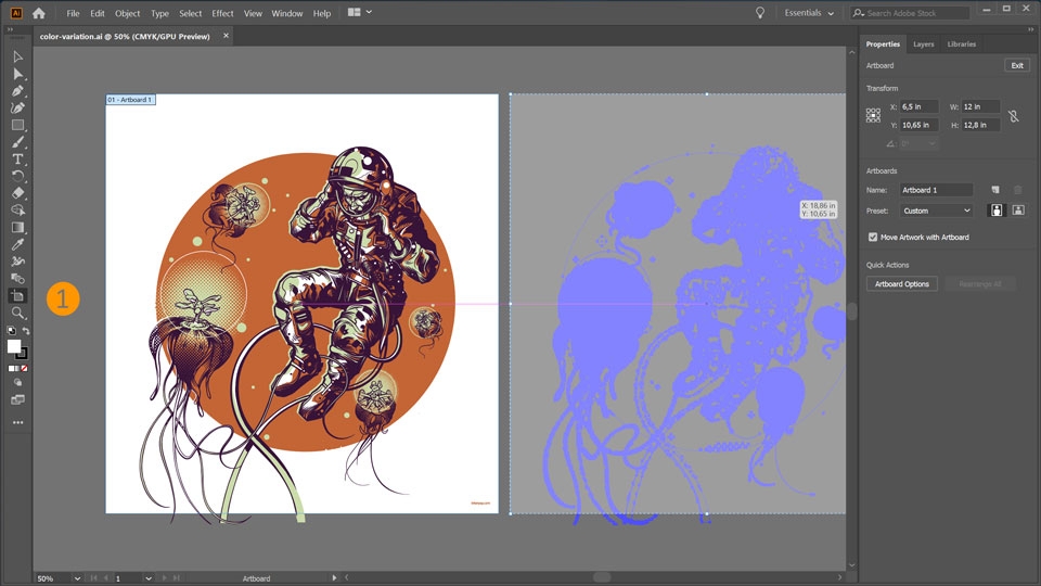 1. Duplicate the artboard so you can see a before and after. Choose the Artboard tool, then Option/Alt + drag to duplicate the artboard and its contents.