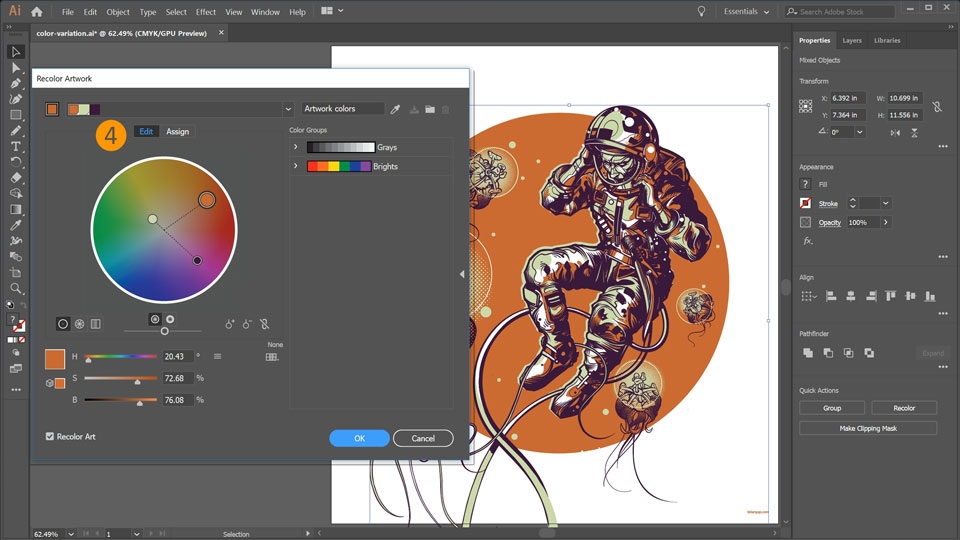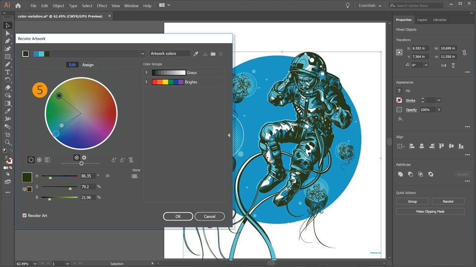 Learn how to use the Recolor Artwork feature to quickly change coloration of your artwork.