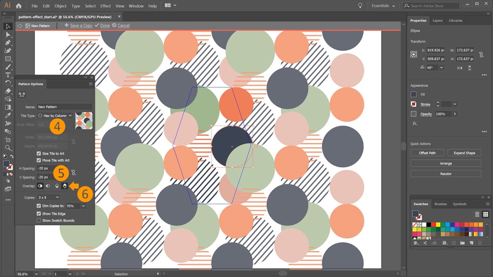 6. Set the Overlap property to Bottom in Front. Click on Done to leave the Pattern Editing Mode.