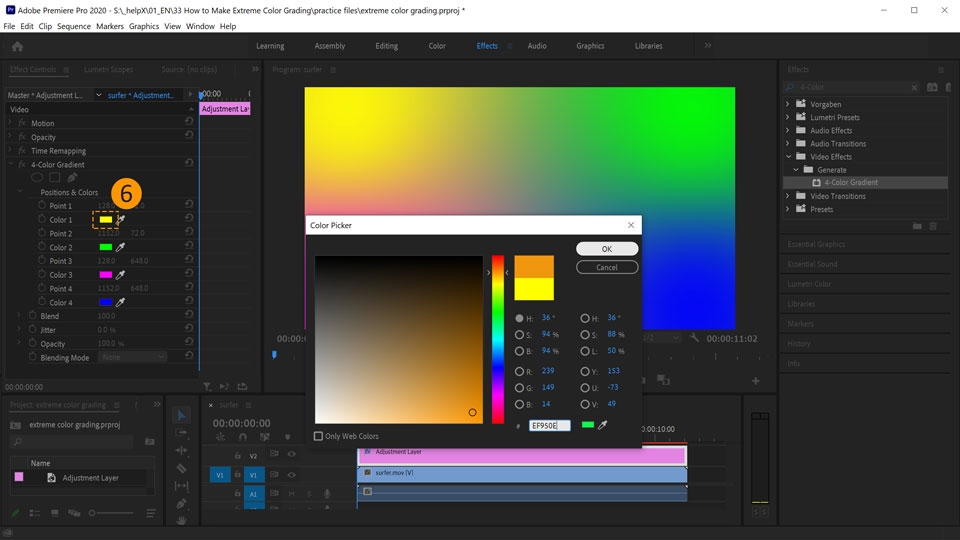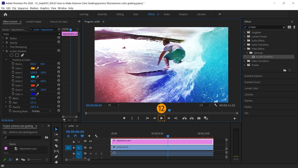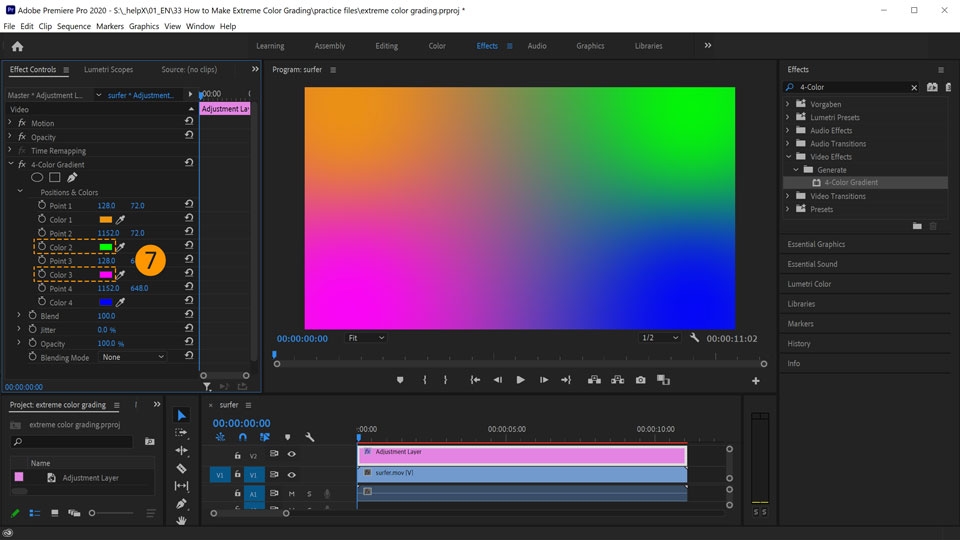 5. Click on the 4-Color Gradient effect and drag it onto the Adjustment Layer in the timeline.