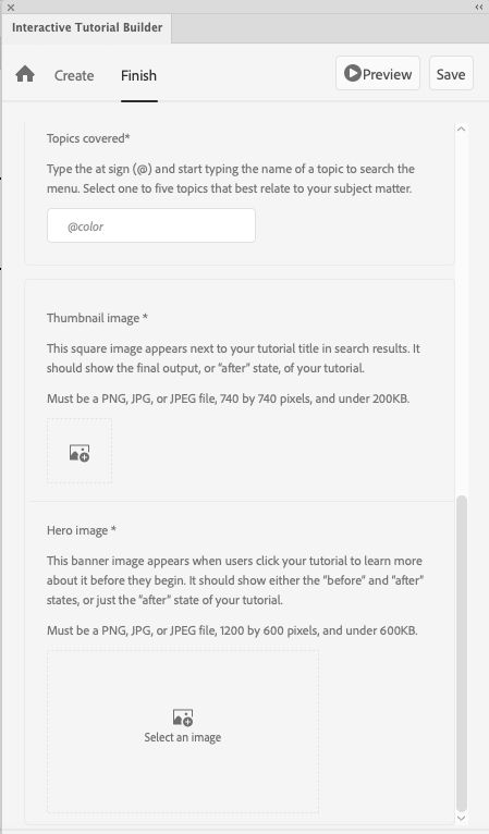 - Click Save at the top of the Tutorial Builder. Feel free to click Preview again to give your tutorial a final once over.