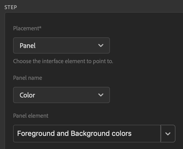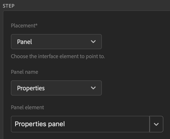 Important: The situations above are the only times you should choose Placement > Layer. - For all other Layers panel-related coach marks, use the drop down menus to choose Placement > Panel, Panel > Layers, and a Panel Element.
