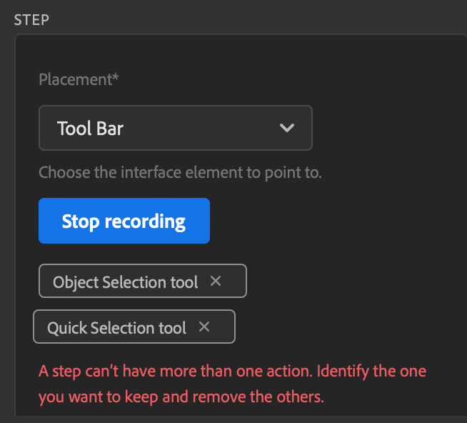- Tip: If you recorded more than one of the same action (for example, if you clicked the same tool more than once by mistake), removing one of those actions will remove all instances of the same action on this step.