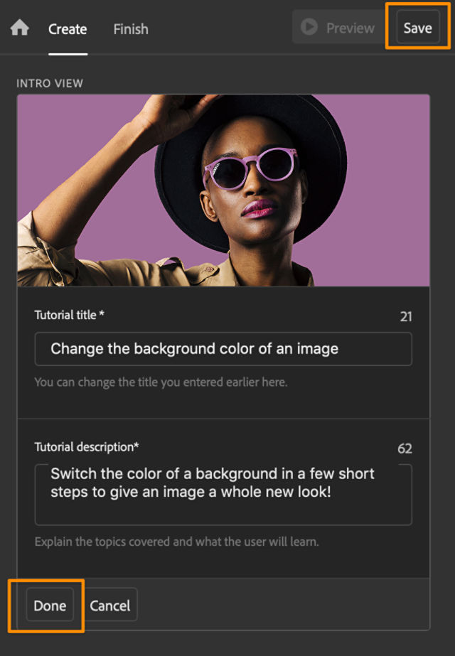 - If you want to make any changes to your tutorial, click Create at the top of the screen to return to your sections and steps.